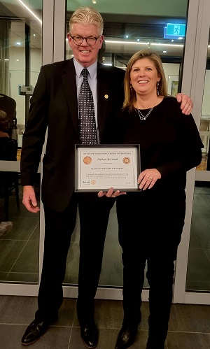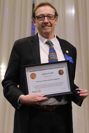 A Paul Harris Fellow Recognition plus four Sapphires was presented to Keiran Cromie (Rotary Brighton Beach and Brighton, 27 plus years as a Rotarian)Keiran was a charter member of the Rotary Club Brighton Beach in 1995 and transferred to Rotary Club of Brighton in 2017. During that time he held the roles of Charter Secretary, President, Treasurer and many other Board positions. At a District level, Keiran has organised many GSE functions, the Adelaide Conference, and a number of other events.
