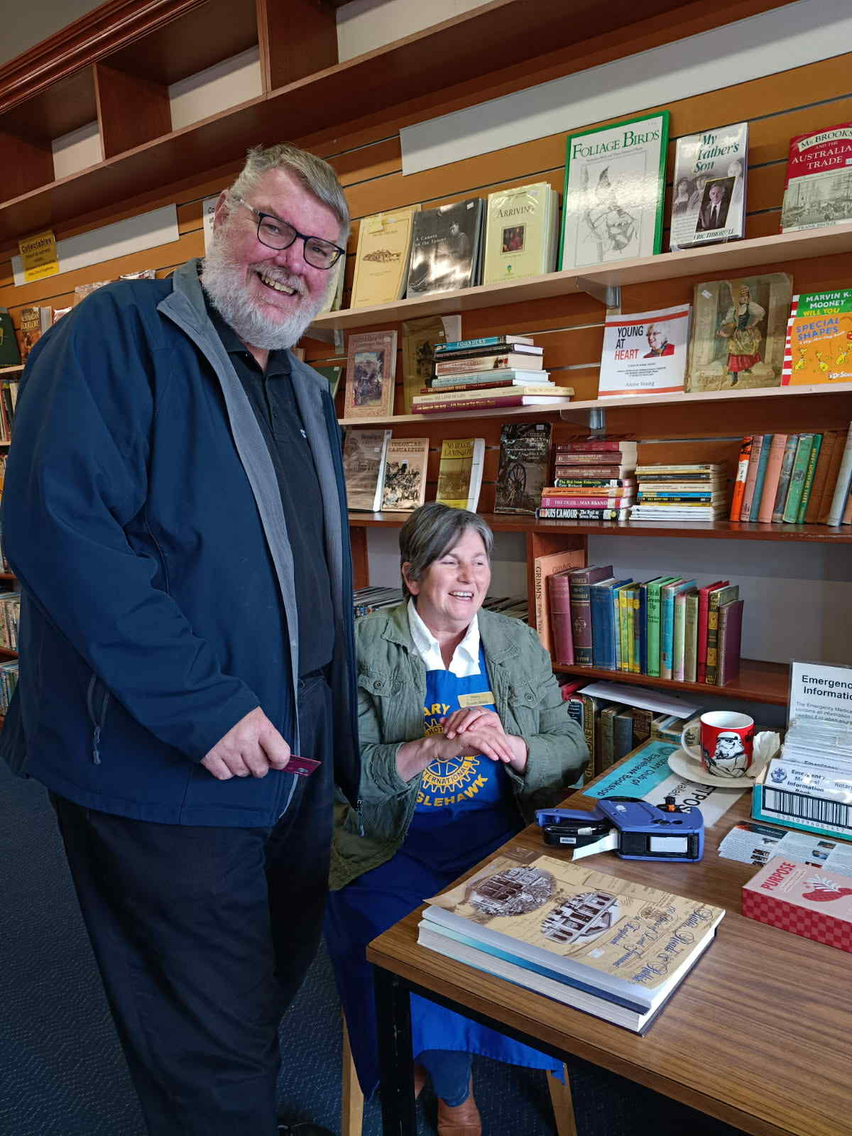 Along the way, I enjoyed the wonderful Kangaroo Flat weekly community meal on Tuesday—which was pure joy—visited the Eaglehawk Book Shop on Wednesday (and received a bonus history lesson about the building), caught up with volunteers from the knitting program run by dedicated members and friends from various clubs who collect, collate, and pack knitted garments to send overseas to places like East Timor and Papua New Guinea, and checked out the annual Christmas raffle run by Bendigo South and Eaglehawk in partnership with local groups (and, yes, I bought my lucky tickets!). I also managed to be interviewed on local radio by Allison Bacon. It was a busy but very rewarding week. My thanks go to all the clubs for their hospitality, to Alison for organising my itinerary and transport, and to Sue Foley and Dennis Tarrant for hosting me.