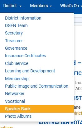 The Speakers Bank is a very useful resource that assists Clubs in sourcing interesting and diverse speakers to enhance their weekly meeting program.